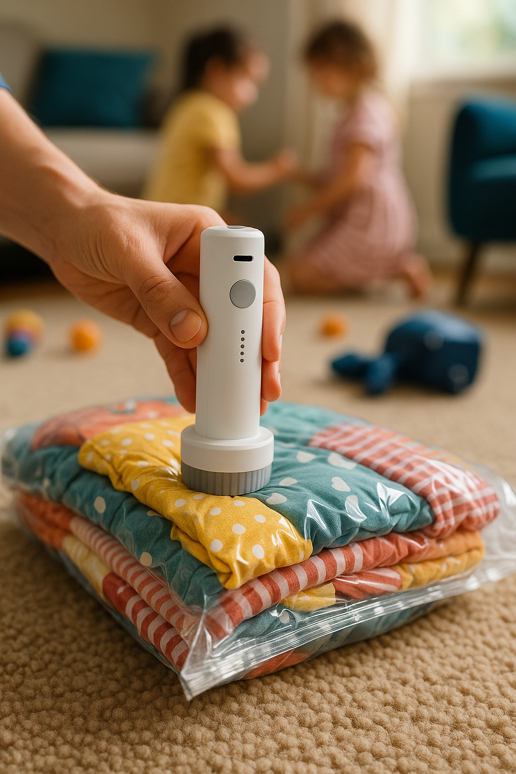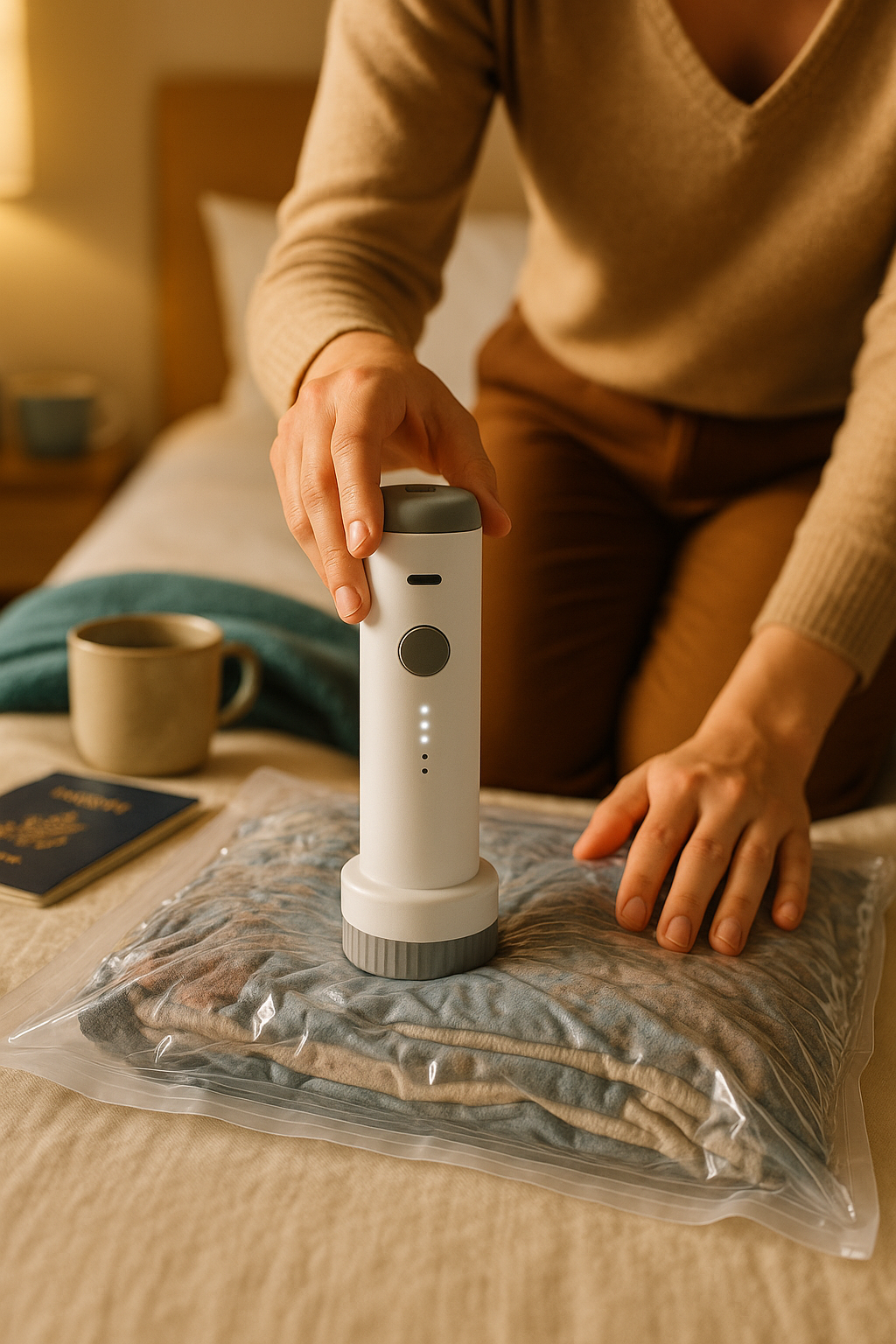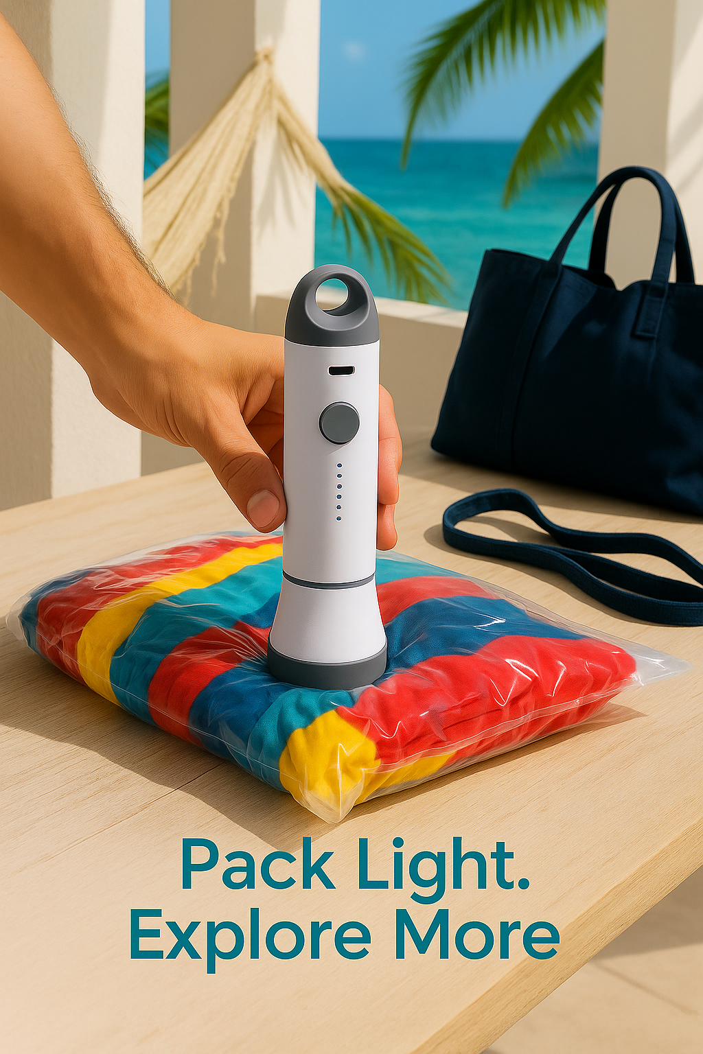 VacPack Go is fully portable and USB-C rechargeable, so you can repack on your schedule.